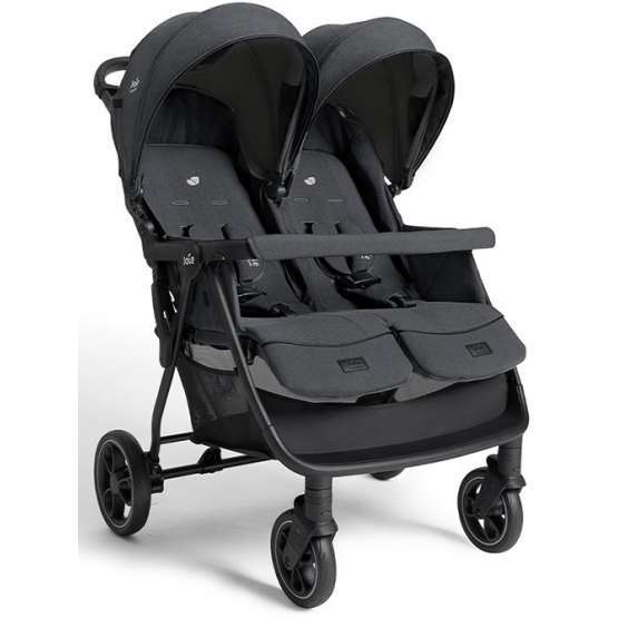 Passeggino gemellare Joie Signature Estrella: leggero, elegante e adatto dalla nascita fino a 22 kg per seduta. Schienali reclinabili indipendenti, chiusura facile, cappottine UPF 50+, sospensioni a 4 ruote e ampio cestello.